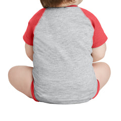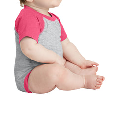 This baseball-style bodysuit will have your baby cheering for the home team. Raglan sleeves and contrast ribbed leg openings give this bodysuit an all-star look.