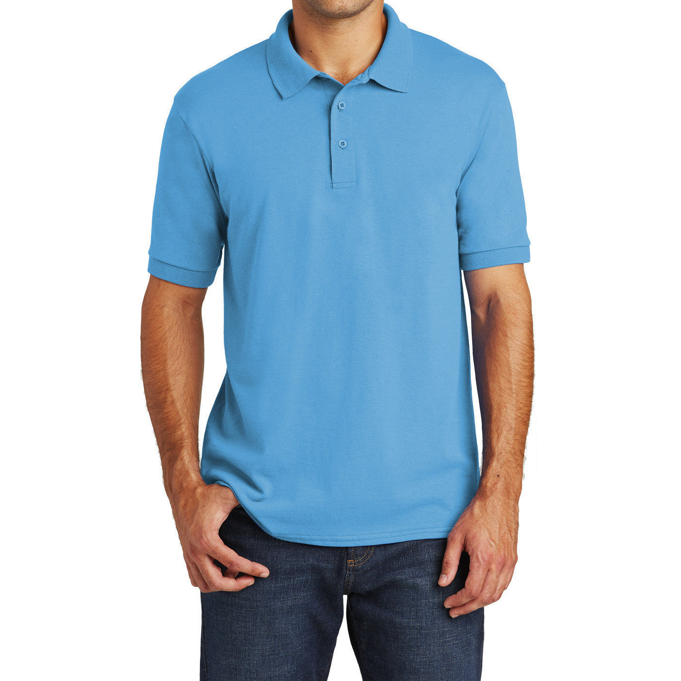Men's Short Sleeve Core Blend Jersey Knit Left Pocket Polo T-Shirt