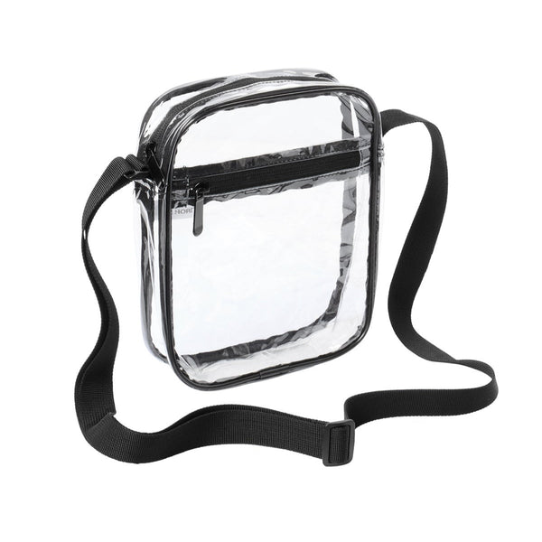 Stay organized and event-ready with this Clear Crossbody Bag. Made from durable clear PVC with reinforced polyester webbing trim and strap, it offers both function and style. The adjustable crossbody...