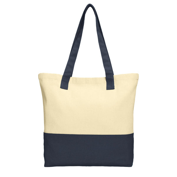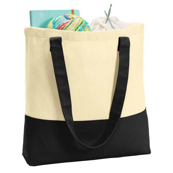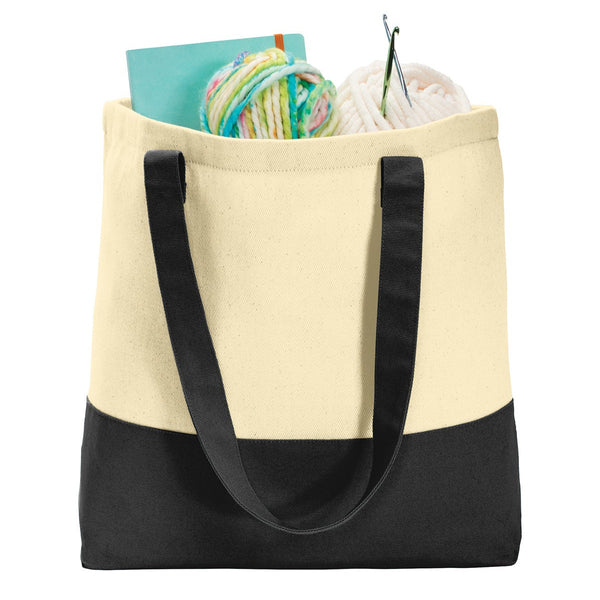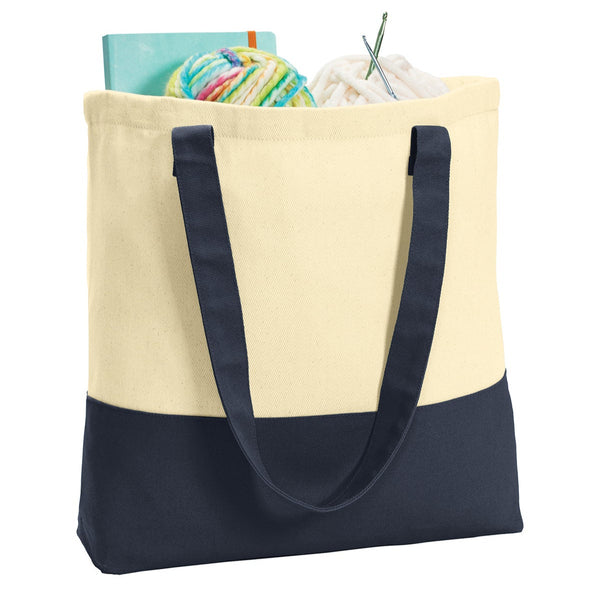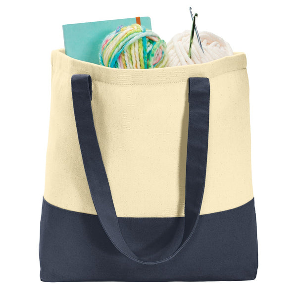 Modern, stylish, and functional, this versatile cotton tote features on-trend colorblock handles and bottom for a fresh, updated look. Made from durable 10-ounce cotton twill with sturdy 11-ounce canvas accents,...