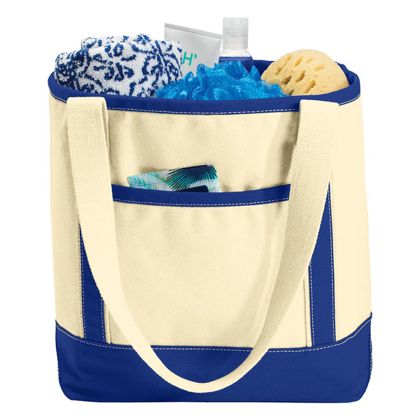Stylish and built to last, this durable cotton canvas tote is ideal for beach days, shopping trips, and special events. Crafted from heavyweight 15.5-ounce cotton with contrast 11-ounce handle trim...