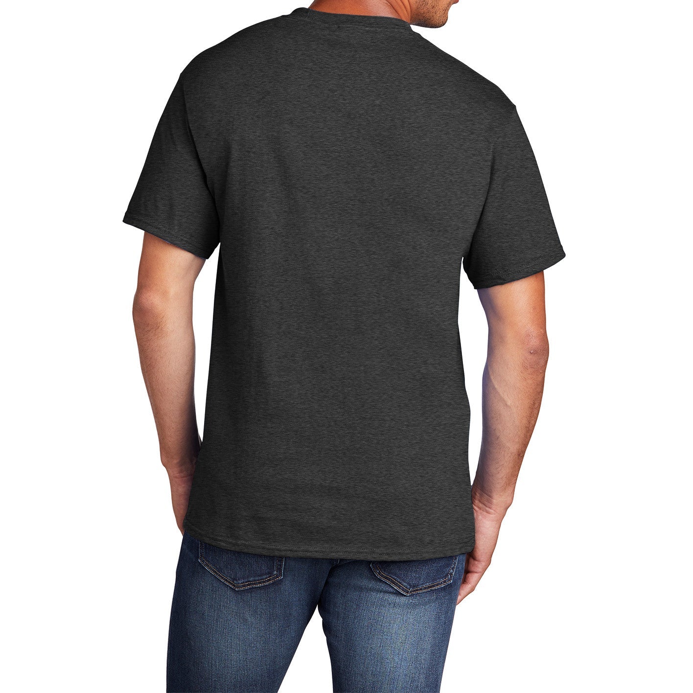 - 50/50 cotton/poly (Neon Blue, Neon Green, Neon Orange, Neon Pink, Neon Yellow, Dark Heather Grey, Heather Athletic Maroon, Heather Purple, Heather Navy, Heather Red, Heather Royal, Heather Sangria, Heather Dark Chocolate Brown, Graphite Heather)