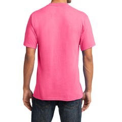 A v-neck gives our budget-friendly tee up-to-date style. Due to the nature of 50/50 cotton/polyester neon fabrics, special care must be taken throughout the printing process.