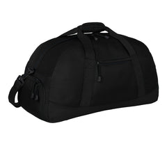 The Basic Large Duffel is designed for functionality and convenience with durable 600 denier polyester canvas construction. It features a large center opening for easy packing, an interior zippered pocket, and a front zippered pocket perfect for decoration or quick access. A zippered end pocket provides storage for shoes, towels, or gear. The built-in bottom board maintains the bag’s shape and strength, while the detachable, adjustable, padded shoulder strap offers comfortable carrying. Measuring 13" x 23.5" x 11.5" with approximately 3,513 cubic inches of storage, it’s perfect for travel or sports.
