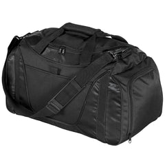 The Small Two-Tone Duffel combines style, value, and organization in one compact bag. Made from durable 600 denier polyester canvas with contrasting polyester dobby, it features a D-shaped zippered entry for easy access. Stay organized with a front pocket, end mesh pocket, and easy-access side pockets. Protective feet and a built-in bottom board ensure durability, while web handles with padded grips and a detachable, adjustable shoulder strap offer versatile carrying options. Measuring 11" x 19.75" x 9.75", it provides approximately 2,118 cubic inches of storage.
